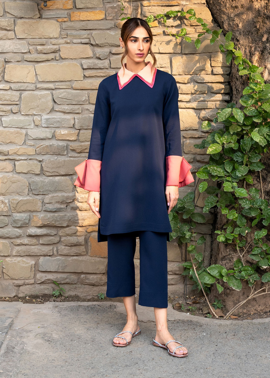 Fuse cultural elegance with our luxurious velvet tunic and tapered trouser set. The drop-down shirt...