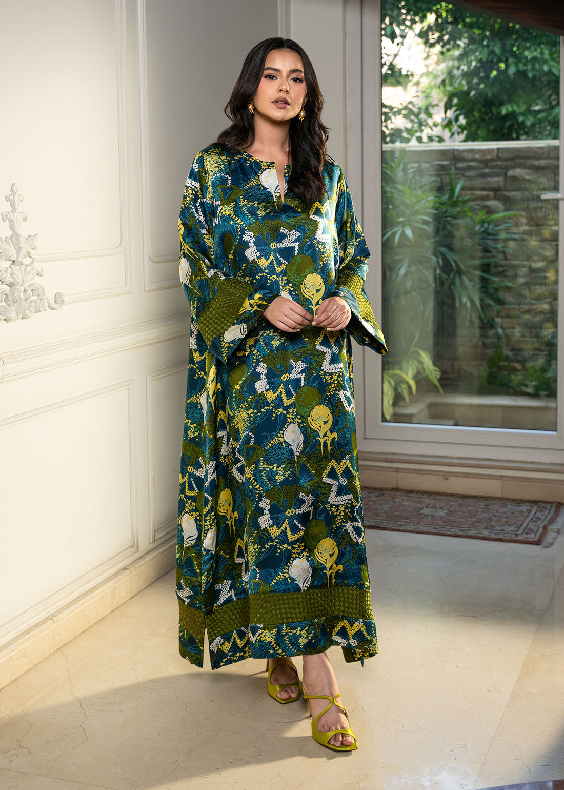 Our kaftan is a vibrant blend of artistry and luxury. Crafted from pure silk, it...