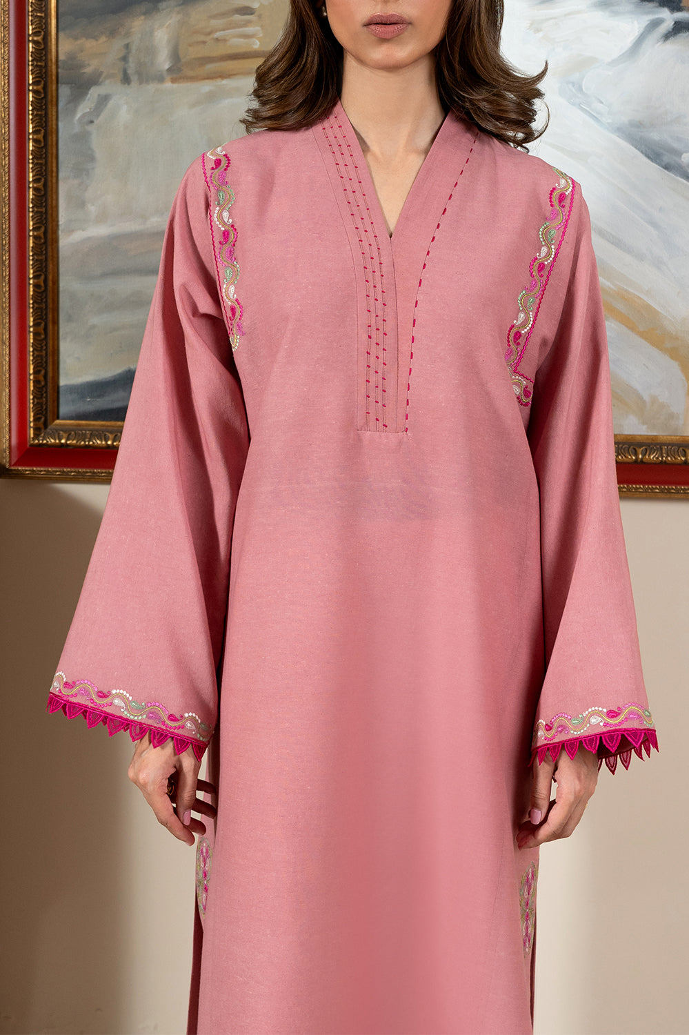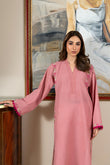 Pure Karandi, Resham embroidery, and tribal motifs come together in our Kayal Kurta. Perfect for day-to-night transitions, this grab-and-go silhouette exudes effortless style. It is paired with our ivory boski shalwar for a complete look.