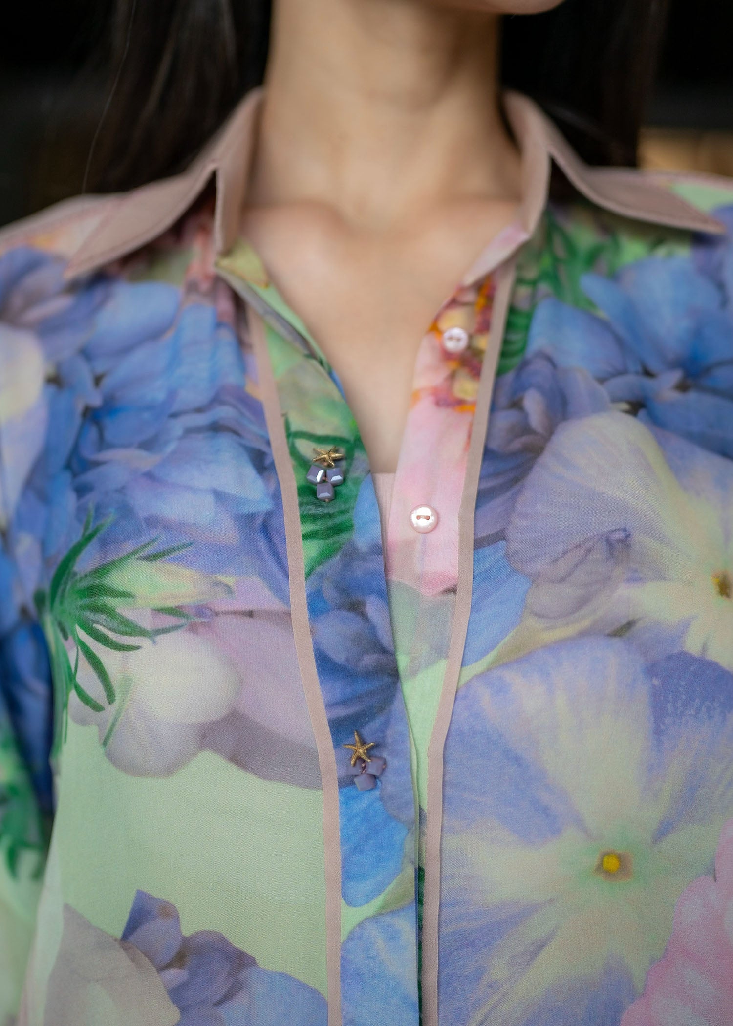 - Button-down Malai chiffon shirt