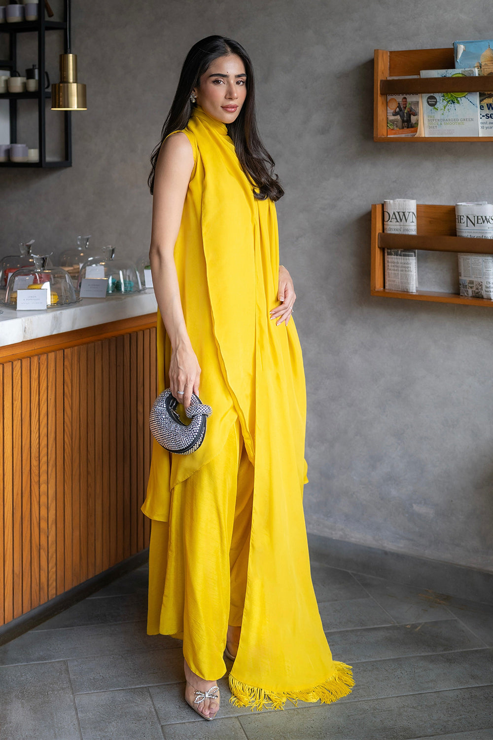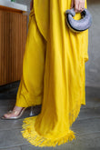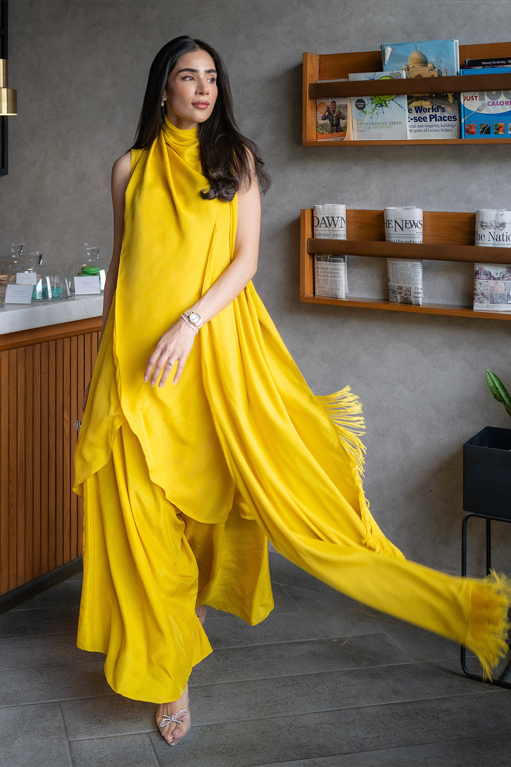 Make a statement in our sunny yellow Chiffon drape, perfect for adding glamour to any night out or holiday celebration.