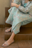 Introducing 'Uran', a breathtaking ensemble inspired by exquisite chinoiserie florals. Set against a serene sky blue canvas, this masterpiece features intricately detailed embroidery in multi-hued borders, paired with a matching embroidered dupatta and culottes. Perfect for making a stylish statement at your summer soirees.
